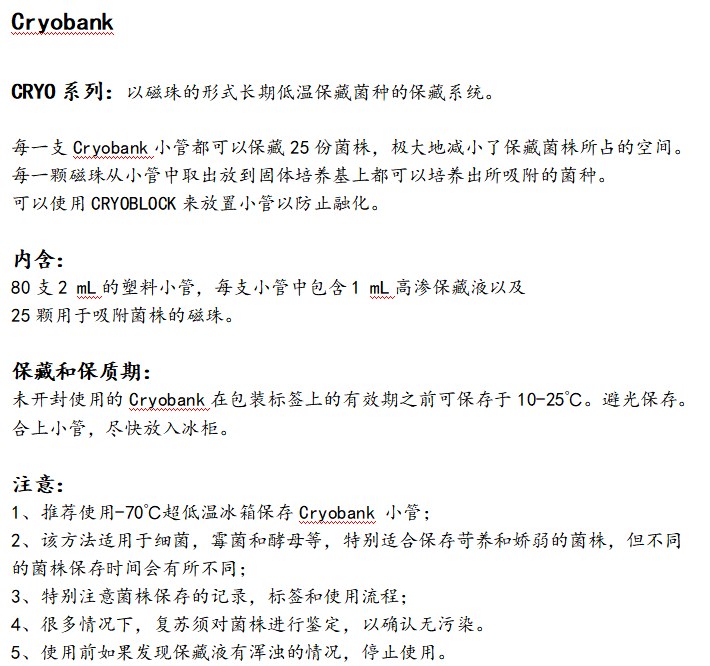 MAST CRYOBANK菌種保藏管